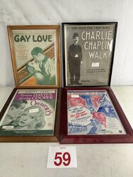 4- framed music sheets see photos for condition sold as is