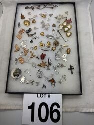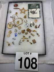 Some figure charms bracelet, charms and necklace pendants a few pairs of clip on earrings. See photos sold as is.