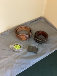 Leather belt, one new old stock belt buckle