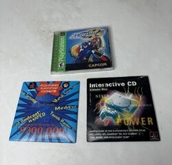PlayStation greatest hits MegaMan X4 complete with booklet Pizza Hut, demo desk and interactive sampler disk sold, as is