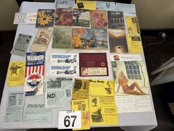 Vintage advertising lot. Flying a 1964 calendar Sperti, suntan light brochure, Dan and yogurt coupons several daily word magazines from the 1970s sold as is.