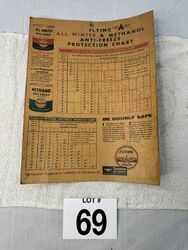Flying A antifreeze, protection, chart 10x14 inch cardboard had pinholes from thumbtacks some staining from sitting on the wall double sided no rips, or tears sold as is