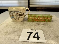 You’re in the doghouse, coffee mug and playboys toothbrush excellent for healthy gum massage the mug is dirty and has some crazy no chips or cracks. The playboys toothbrush, one part has come unglued sold as is.