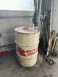 Wolf’s head 55 gallon drum with Erie grease pump some rust tarnish. Some paint has faded unknown if the pump is working untested barrel is empty. sold as is.
