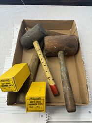 2 new old stock Williams hammer tips. 1 wood mallet 1 rubber mallet. I sledge hammer sold as is.