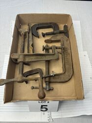 Two craftsman C- clamps, one Jorgensen C clamp, and one snubber tool number two all in used condition sold as is