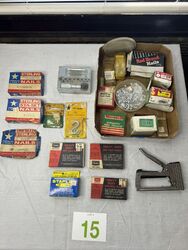 Staples, Nails, rivets, S hooks, washers, craftsmen stapler and sylvania tool kit