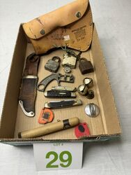 Various knives, sheaths, locks, etc Sold as is