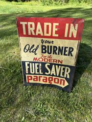 Paragon oil burner sign and realtor sign. The sign is double-sided with two different advertisements 24” x 18”. See photos for description sold as is.