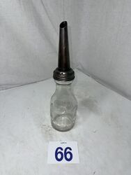 Douglas oil co. Glass oil bottle with spout. No chips or cracks. See photos for description sold as it.
