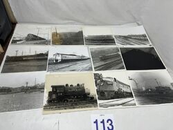 40 train railroad photos 8 1/2 x 11” some photos. Have some damage creases. See pictures for description sold as.