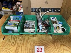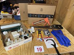 There’s a caulk gun, a handsaw tile, nippers, adjustable, jaw grips, rubber, gloves, surge protectors, electronic plugs, and switches sold as is