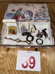One ladies watch and Klein, Various pens and earrings see photos for description