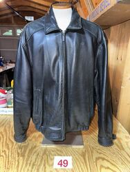 Men’s leather motorcycle jacket size extra large, missing liner see photos for description, no rips, or tears sold as as