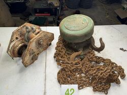 Yale spur geared block 1 ton with I-beam trolley both items have rust and tarnish untested sold as is