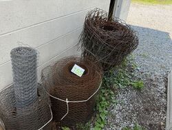 Garden fence and chicken wire lot unknown length and used condition. See photos.