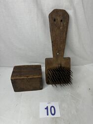 Antique primitive wooden comb for hemp flax farm tool with spike cover see photos for description sold as is