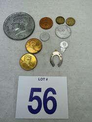 Parkway, tokens, treasury, tokens, religious coin, horseshoe, pendant, Ruth medals And one oversized half dollar see photos sold as is
