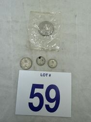 Two silver Canadian dimes one Canadian silver quarter, and one 1966 nickel dollar coin sold as is see photos