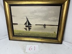 Signed oil on canvas sailboats 28” x 22” see photos for description sold as is