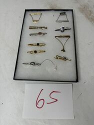 Multiple quantities of necklaces, tie, clasp, collar stays, and collar pin. See photos for description sold as as.