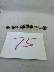 Tie pin lot of 10 various types of pins, the Shriners club, the Longfellows, the salvation Army, university of Cincinnati, Michigan, moose association, and others no backs on pins. see photos sold as is